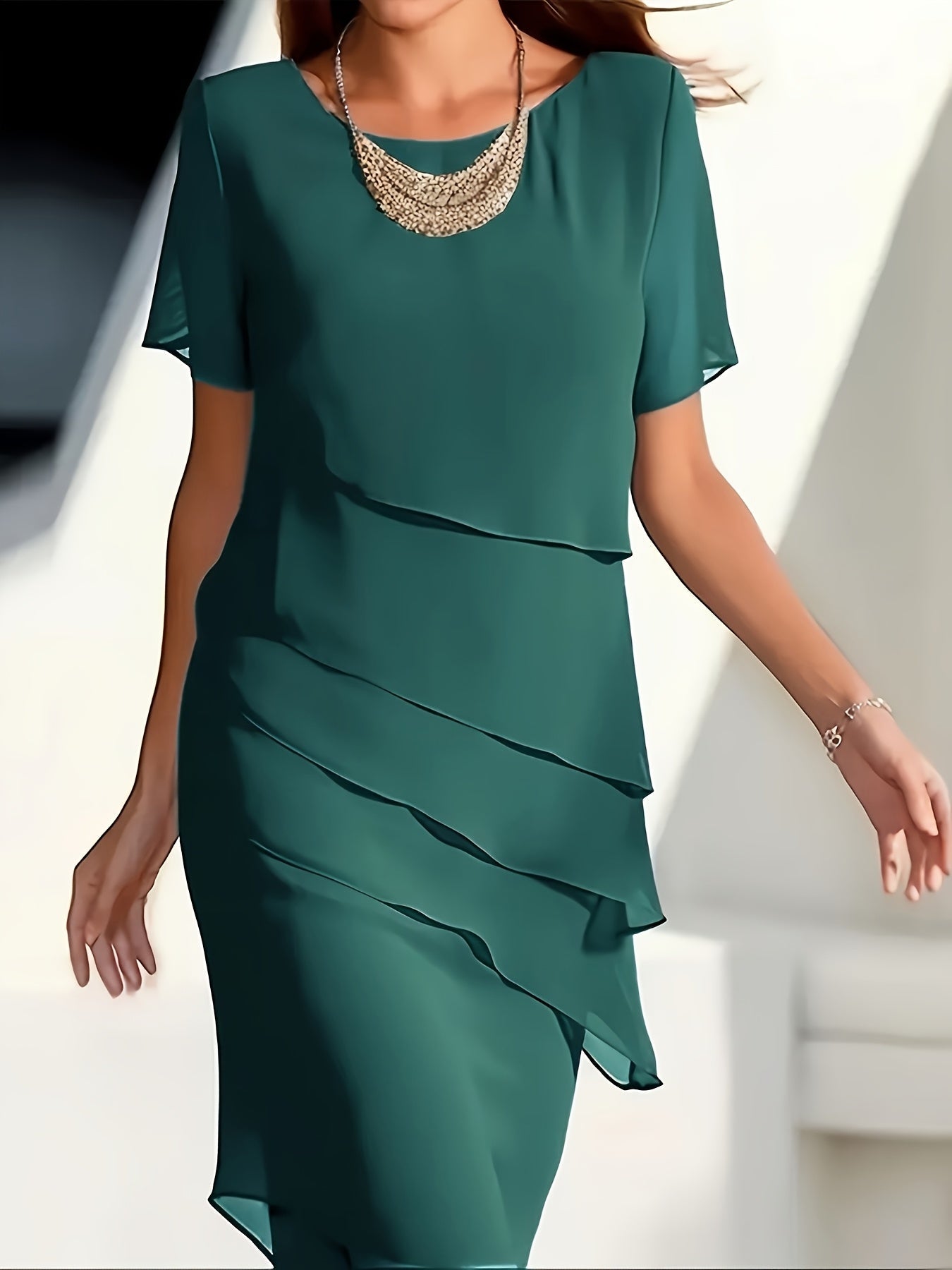 Allegra™ – Abito Midi in Chiffon con Collo a Barchetta & Volant