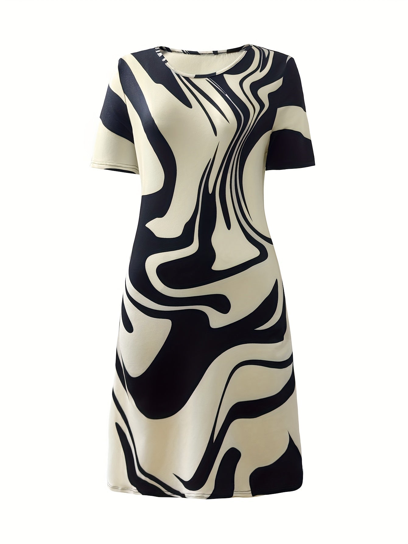 Aurora™ – Abito A-Line Geometrico a Maniche Corte con Collo Rotondo • Casual