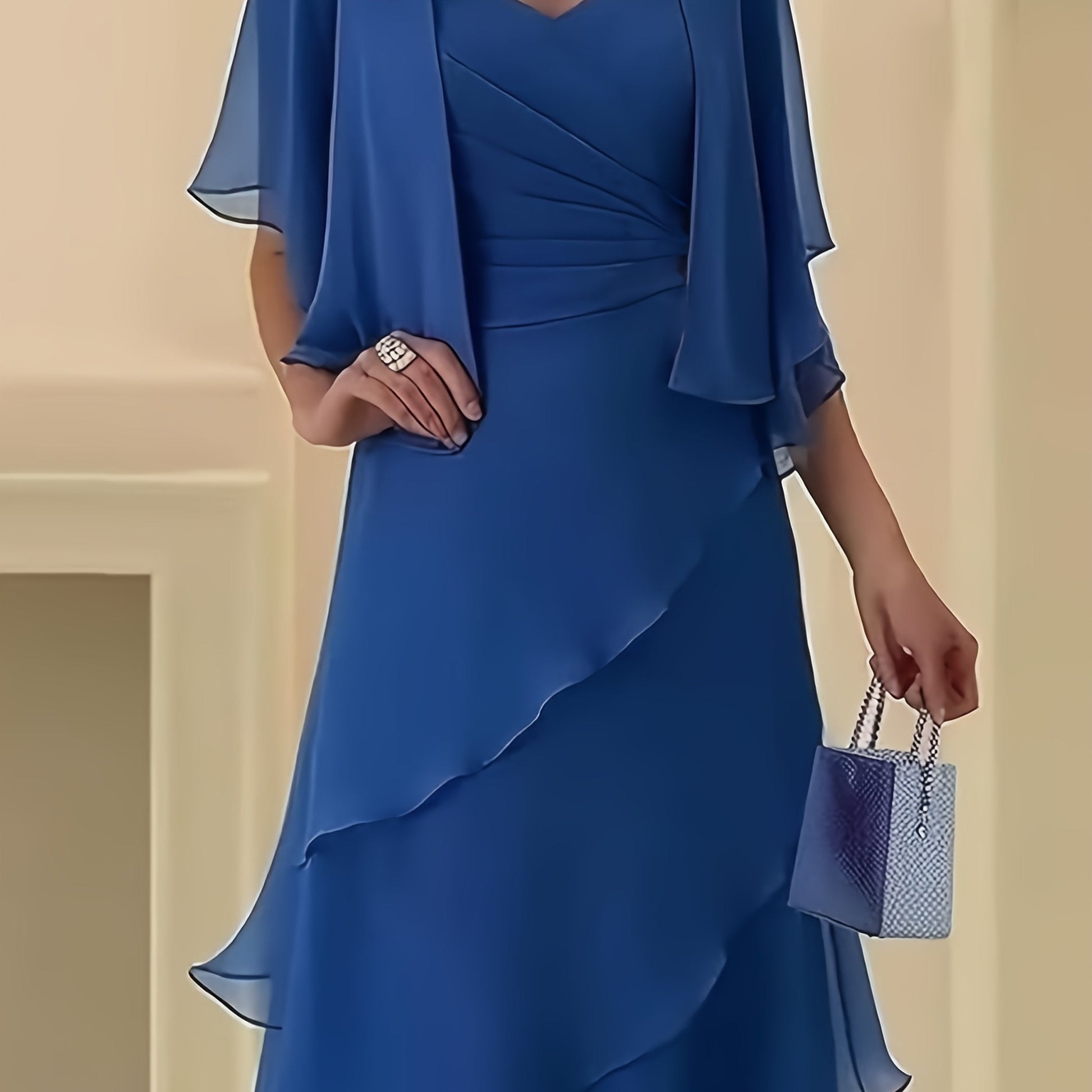 Chiara™ – Vestito Midi in Chiffon Blu Reale • Orlo Asimmetrico