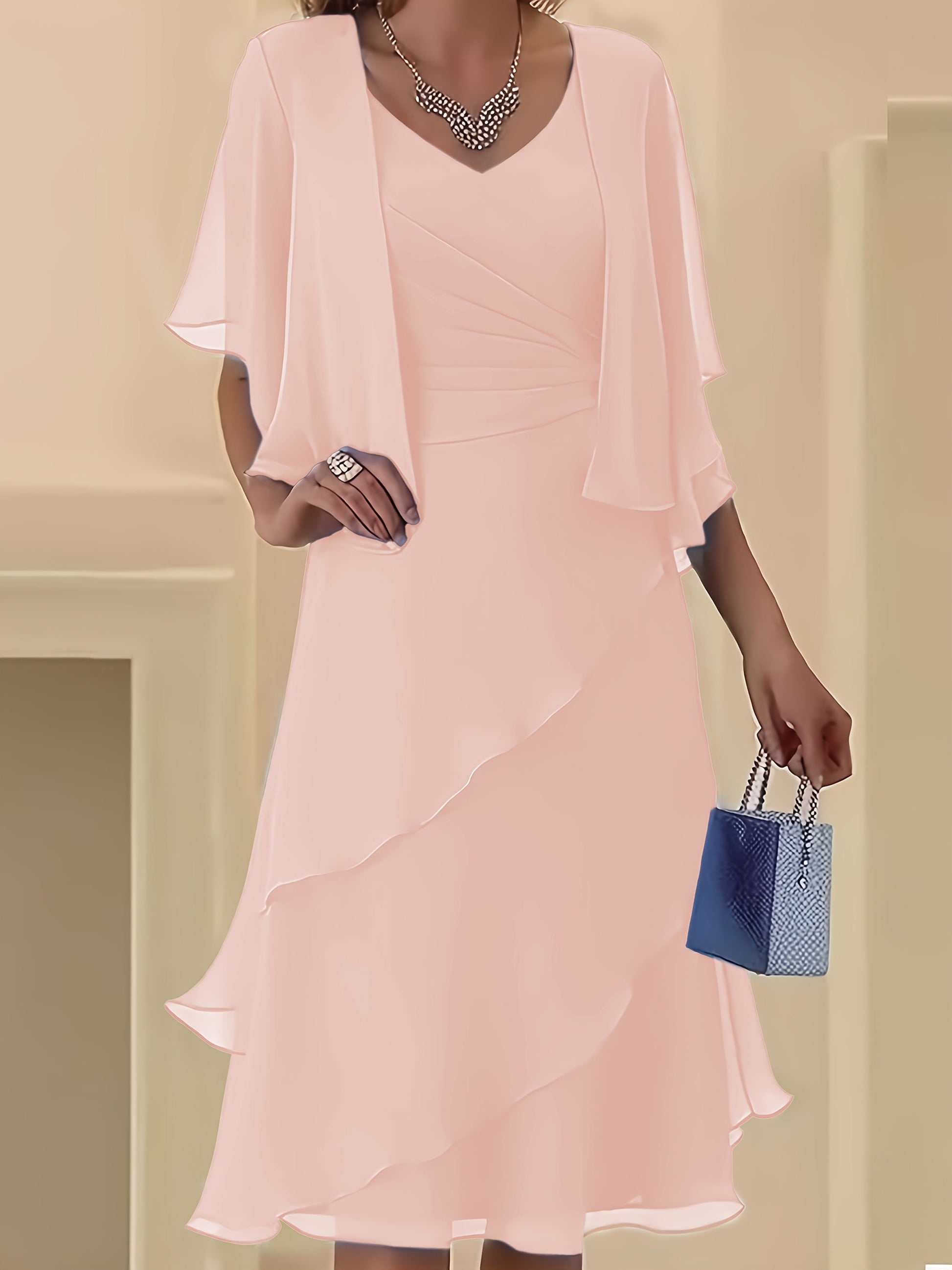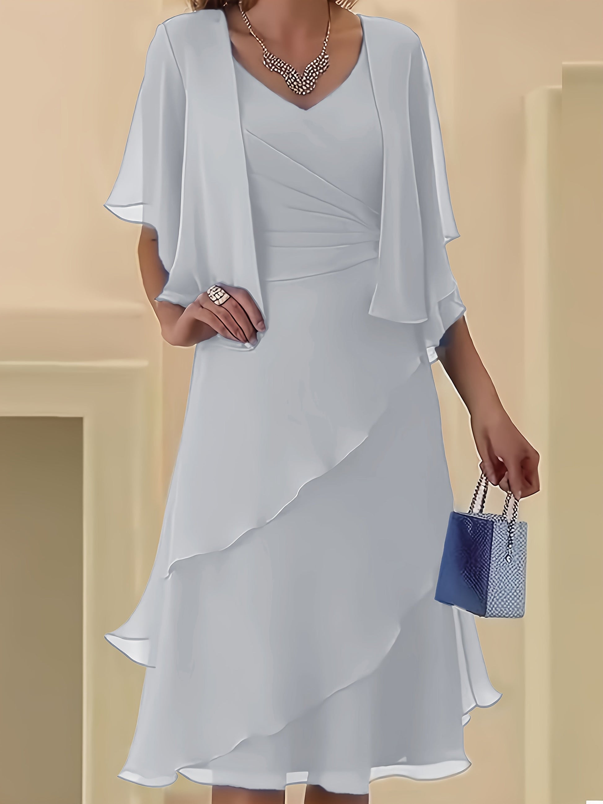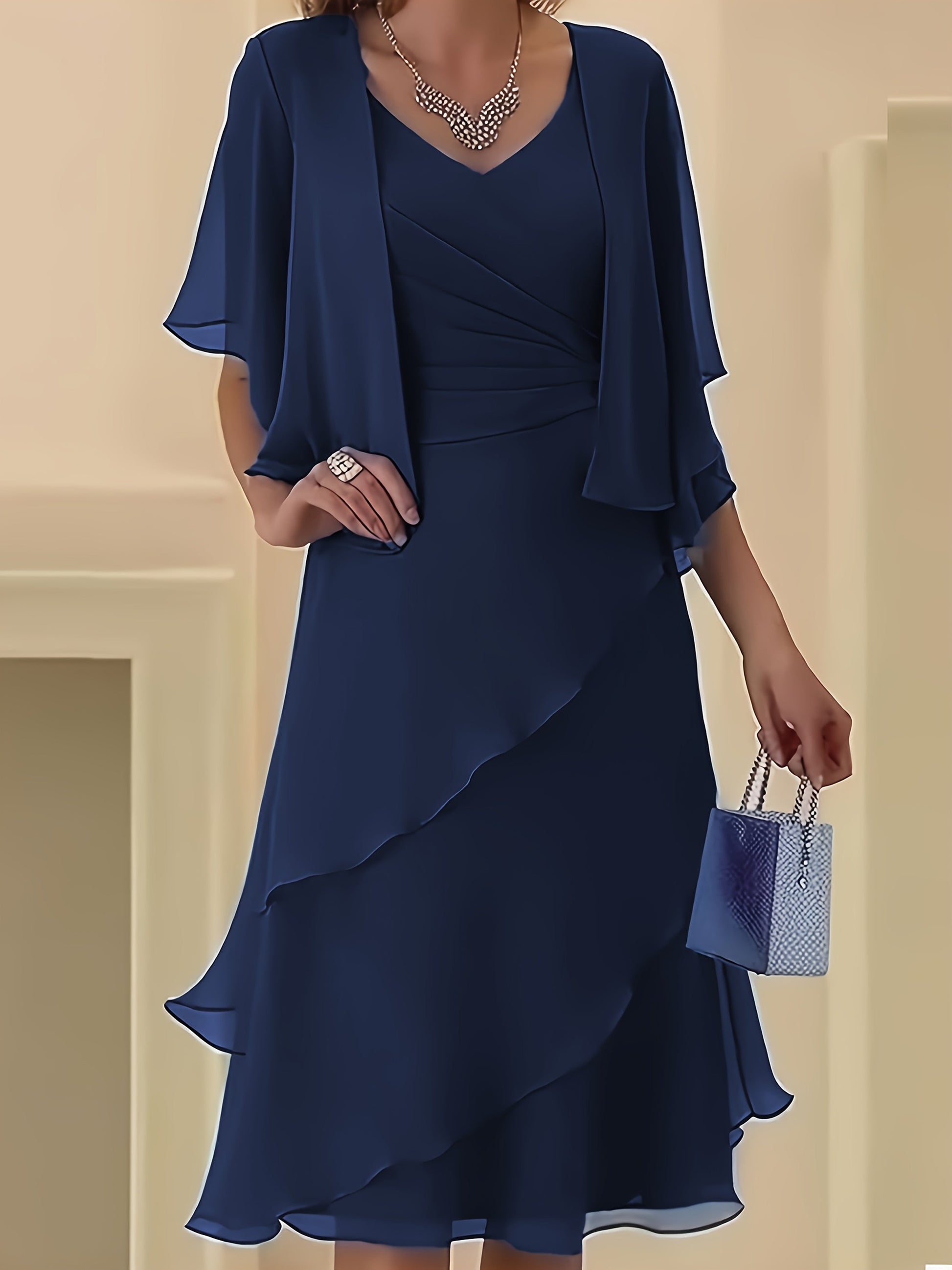 Daria™ – Abito Chiffon Taglie Forti con Scollo a V & Volant