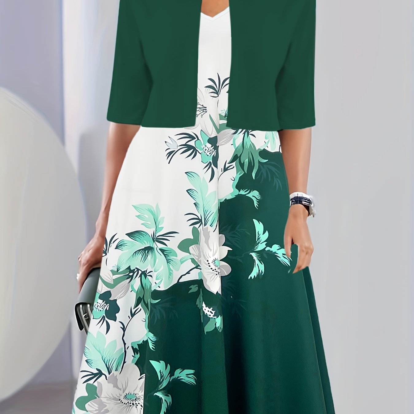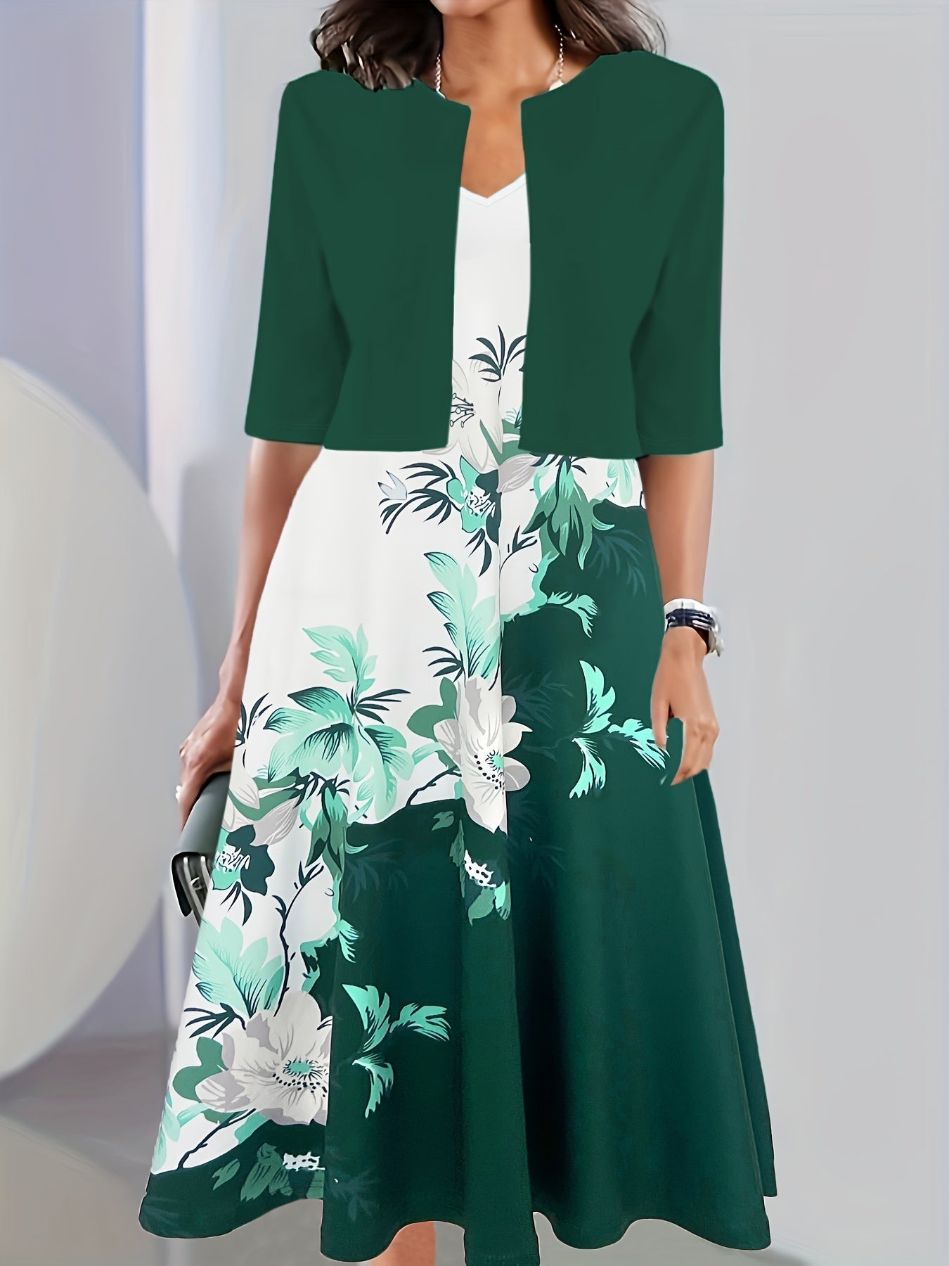Sienna™ – Set Elegante con Giacca Leggera & Abito Midi • Stampa Floreale