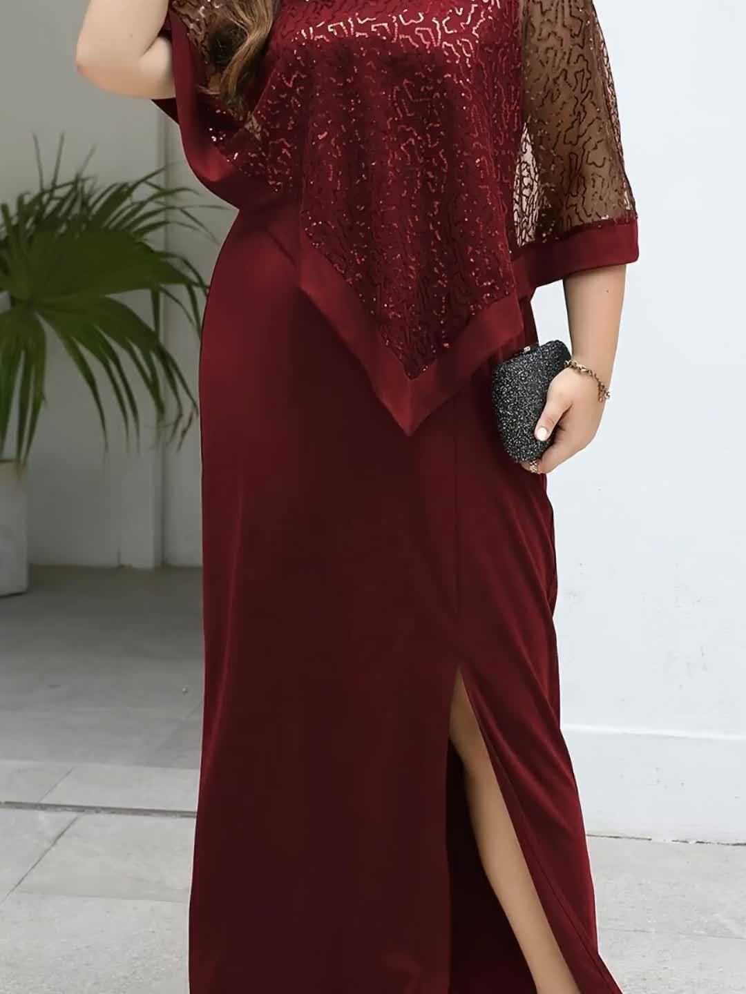 Victoria™ – Vestito Maxi Slim Fit Taglie Forti • Paillettes & Maniche a Campana