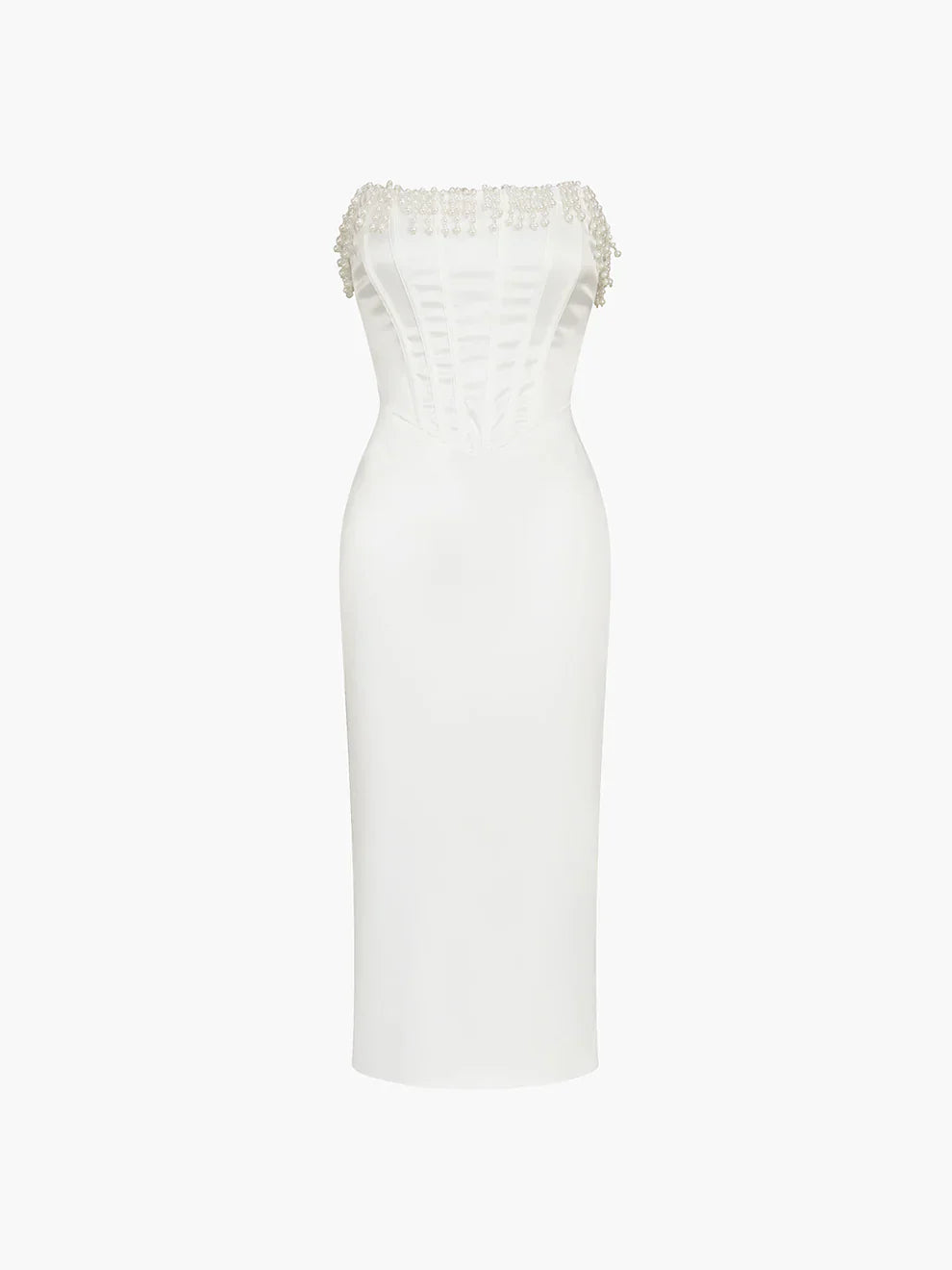 Eloise™ – Abito Bodycon Collo Barca con Perle Imitazione • Lunghezza Midi